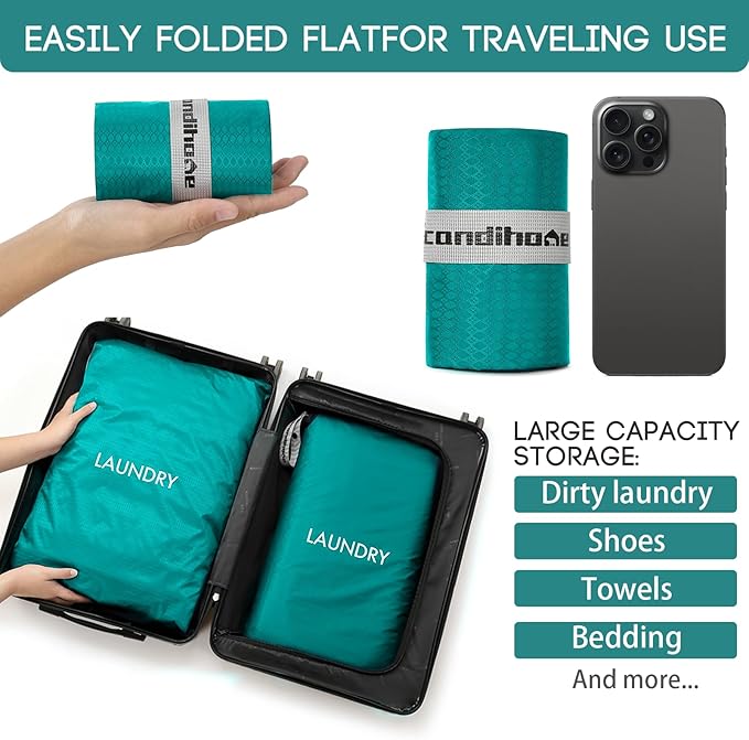 - Perfect Travel Size: Two different sizes suitable for more scenes. The large size is 23.6*17.7 inches, and the medium size is 21.7*13.8 inches. The folded size is very small, taking up the smallest possible space in the suitcase while providing greater capacity, especially suitable for travel, camping, fitness, and students.