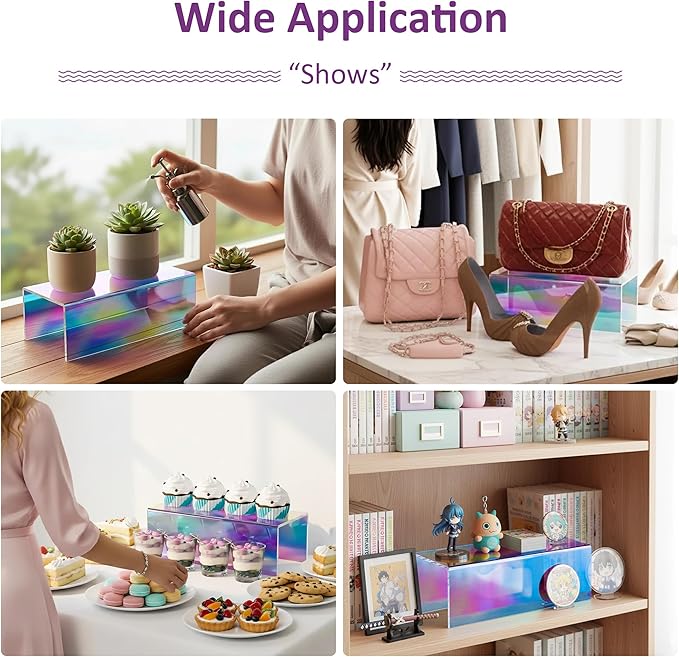 - Iridescent Sturdy Acrylic Material: The acrylic risers made in iridescent acrylic material in 3mm thickness. Unlike other fragile plastic. The acrylic material is very durable and sturdy.