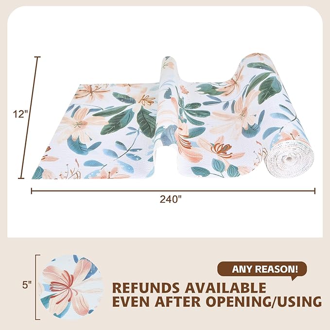 - Colorful Floral Decorative Design:Unlike ordinary plain shelf liners, our cabinet liner adopts a unique colorful floral pattern that adds a touch of vitality to your storage space. It is not only a practical protector but also a decorative shelf cover, suitable for dressing tables, closets and bathroom cabinets to enhance the aesthetics of your home
