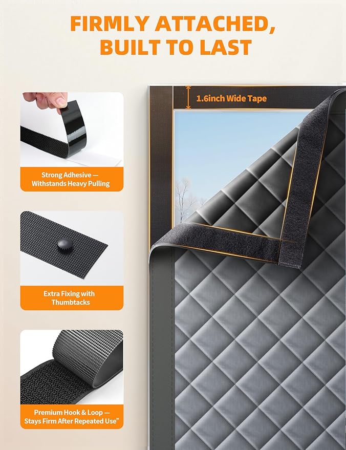 - Weatherproof & Durable Thermal Insulation: The thick, quilted material with strong hook & loop closure stays firmly in place, providing long-lasting weatherproof window insulation for cold climates.