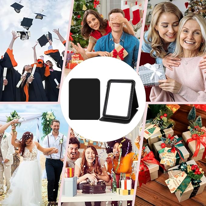 Folding Travel Mirror PU Portable Adjustable Rectangular Ultrathin Vanity Mirror with Stand, Small Makeup Mrror for Purse, Travel, Camping, Home, Office, Gifts (Black)