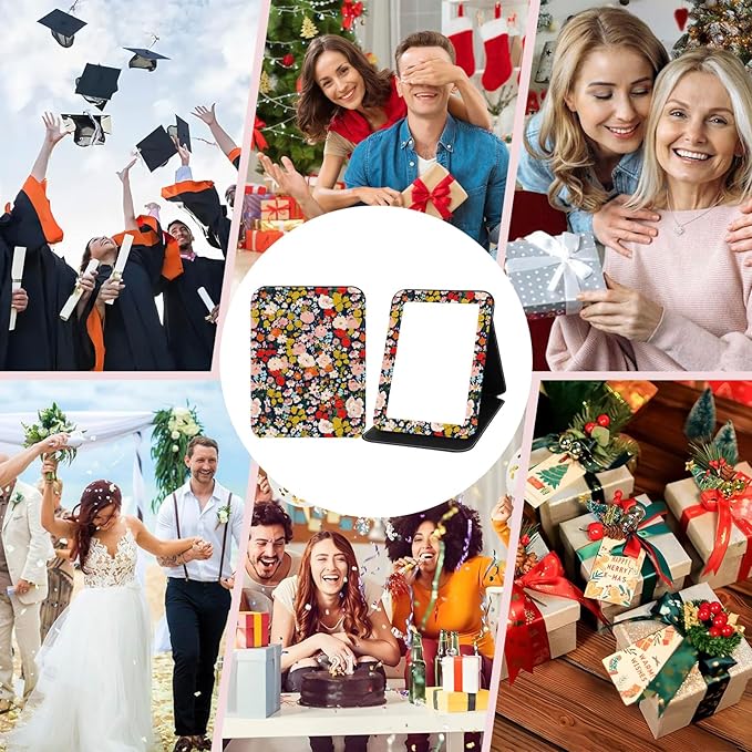 - 🎉【Unique Design】: Folding makeup mirror with vibrant floral patterns, PU leather paired with a high-definition mirror surface. A dual-purpose tool for touch-ups and room decor.