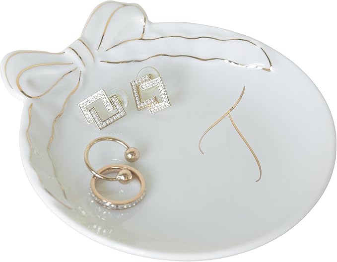 - 【Elegant Bow Design】 This jewelry tray features a charming bow shape, measuring approximately 4.75 inches in diameter, perfectly sized for tabletops and offering a cute, practical solution for storing your precious accessories.