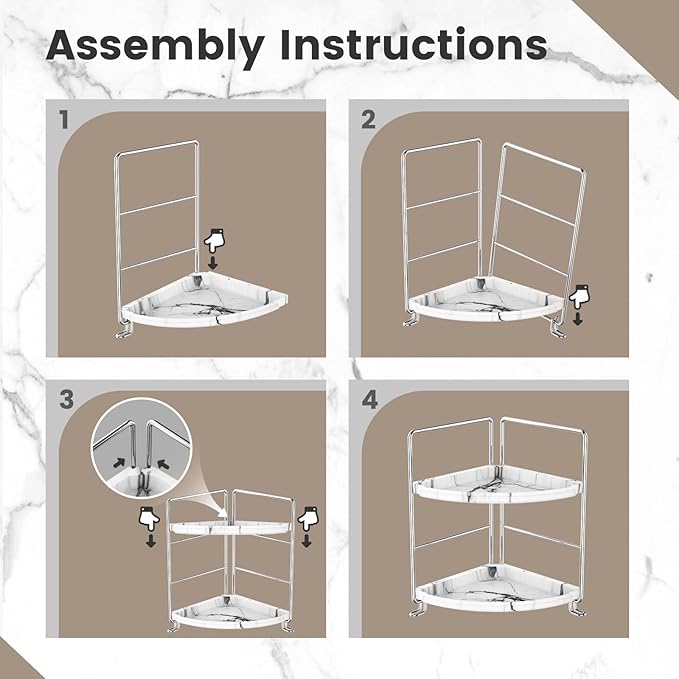 2-Tier Corner Bathroom Organizer, Countertop Perfume Makeup Shelf Cosmetics Storage Shelf Display Rack Vanity Shelf,Kitchen Spice Rack,PP Imitation Marble Design,Tool-Less Install(Silver)