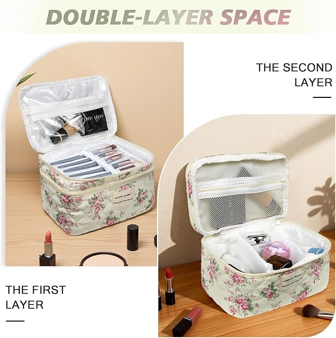 - ✅【 Multi Purpose】The cotton quilted makeup bag can be used as daily handbags, cosmetics and skincare organizing bags, storage bags, and travel toiletry bags. The initial makeup storage bag can be used during travel because it is lightweight and does not take up too much space in the suitcase.