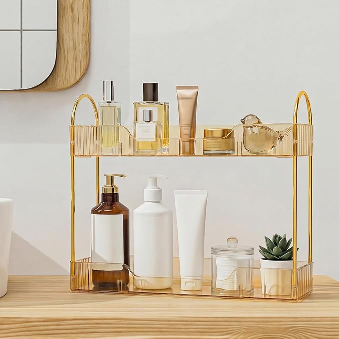 - Durable & Water-Resistant – Made with a sturdy metal frame and high-quality gold plastic trays, this countertop organizer is waterproof, rust-resistant, and suitable for humid bathroom environments.