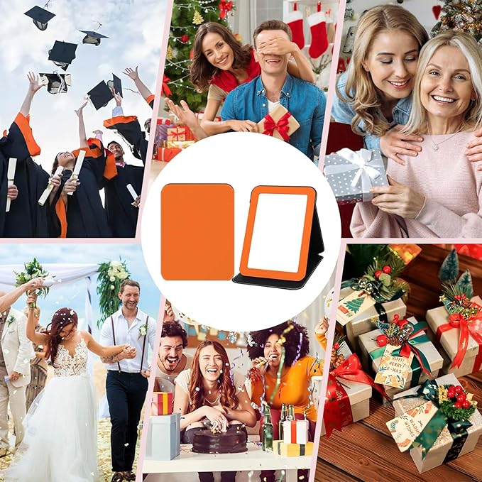 Portable Mirror, Folding Travel Makeup Mirror Adjustable Stand for Desk Compact Personal Hand Mirror for Makeup, Shaving, Home, Camping, Office & On-The-Go (Orange)