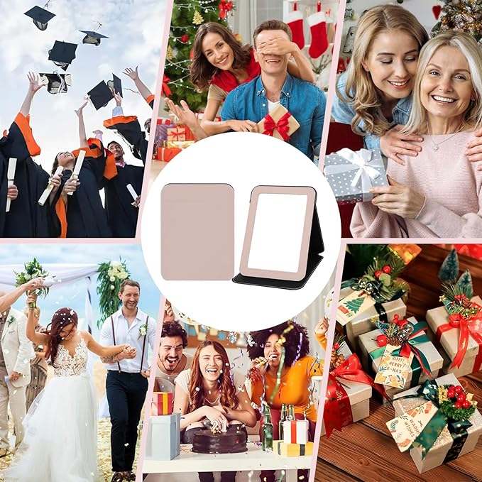 - ✨【Adjustable stand mirror】: Compact foldable, portable design for easy storage when not in use. Supports 90°-180° angle adjustment and features a stable base that securely stands on any flat surface—desk, vanitie, nightstands, and more—without tipping over.