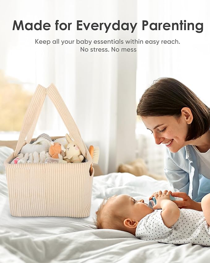 - Stylish & Functional for Every Home – Crafted from premium corduroy fabric, this elegant baby caddy adds a soft, textured touch that complements any nursery décor while offering practical storage. A must-have baby caddy organizer that brings both style and order to your parenting routine.