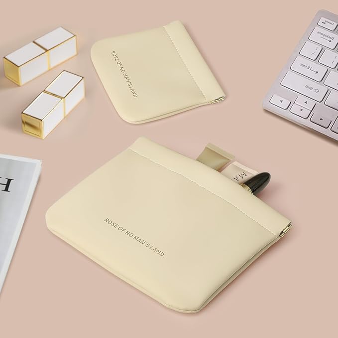 2pcs Small Pouches for Purse, Self-closing Mini Makeup Bag, Organosilicon Super Fiber Leather Coin Purse for Women Travel Pouch Small Cosmetic Bag| Lipstick, Jewelry, Change, Card (Beige)