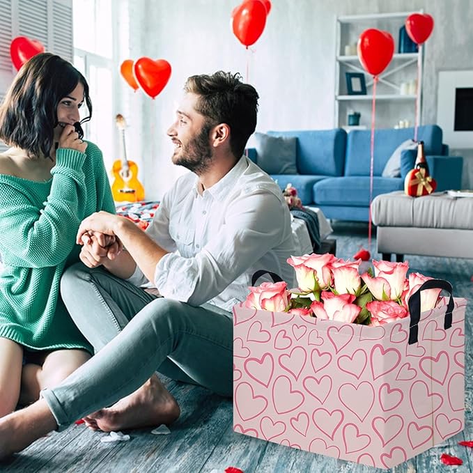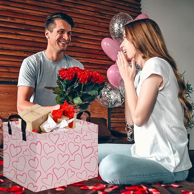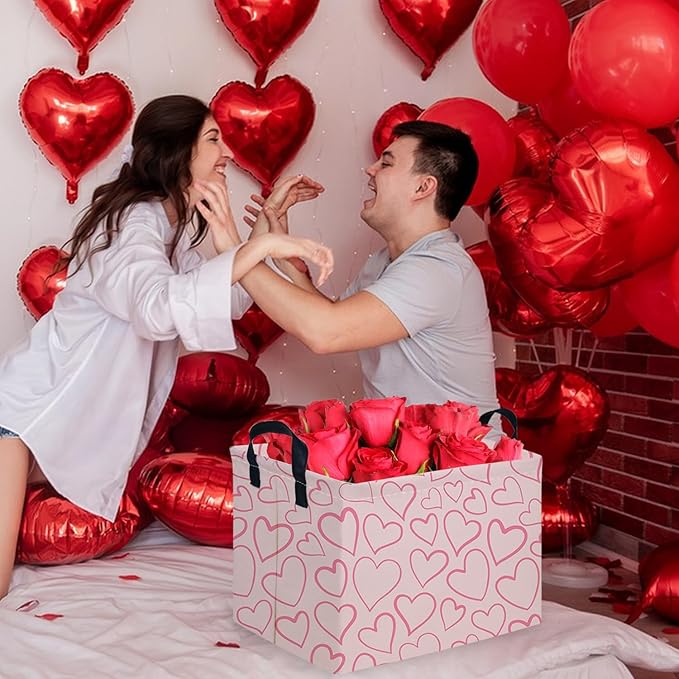 Rectangular Pink Valentine's Day Gift Basket,nursery basket,Pink girls gift baskets,kids toy storage Bin, Love Heart Room Decor for Home,Shelf Baskets(Happy Love)