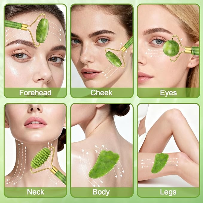 - Jade Roller for Face: This Gua Sha tool set includes three jade rollers, a Gua Sha blade, a mask brush, and a velvet storage bag. Use our Gua Sha set for at-home skincare