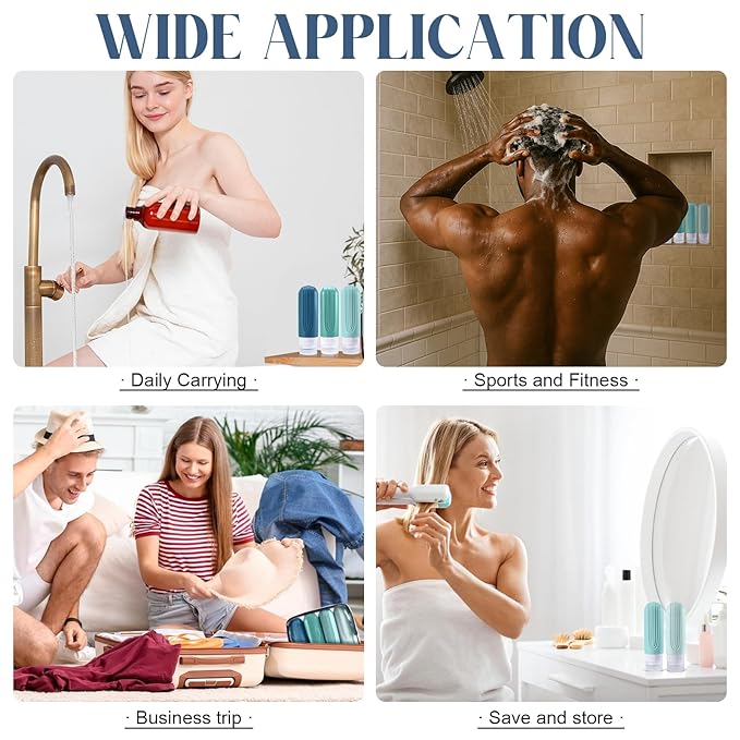 - 【Wide Application】The Travel Bottles for Toiletries are perfect for traveling, business trips, airplanes, beaches, gym showers, cruise ships, camping, and dormitories. These travel bottles are nice containers for lotions, shampoos, creams, makeup, and other skincare products. A must-have travel accessories for your vacation or life