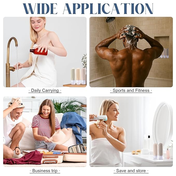 - 【Wide Application】The Travel Bottles for Toiletries are perfect for traveling, business trips, airplanes, beaches, gym showers, cruise ships, camping, and dormitories. These travel bottles are nice containers for lotions, shampoos, creams, makeup, and other skincare products. A must-have travel accessories for your vacation or life