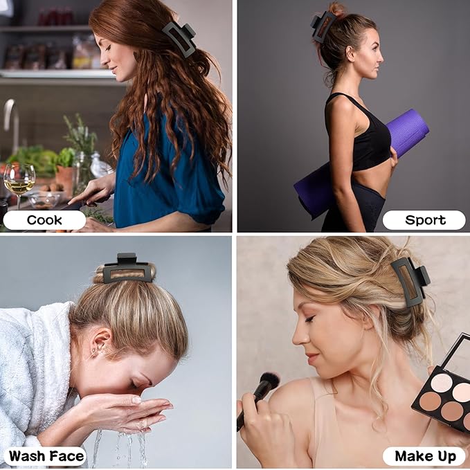 - High Quality: These hair claw clips are made of high-quality rubber paint and plastic materials, strong metal springs. Comfortable matte texture and Acrylic quality and Non- Slip design.