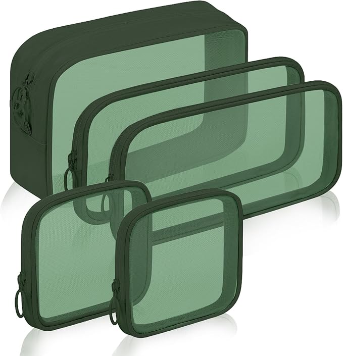 5 Pieces Mini Zipper Nylon Mesh Pouch, Mesh Cosmetic Bags Makeup Bags, Multipurpose Travel Toiletry Bags for Office Supplies and Travel Accessories (Green, Assorted Sizes)