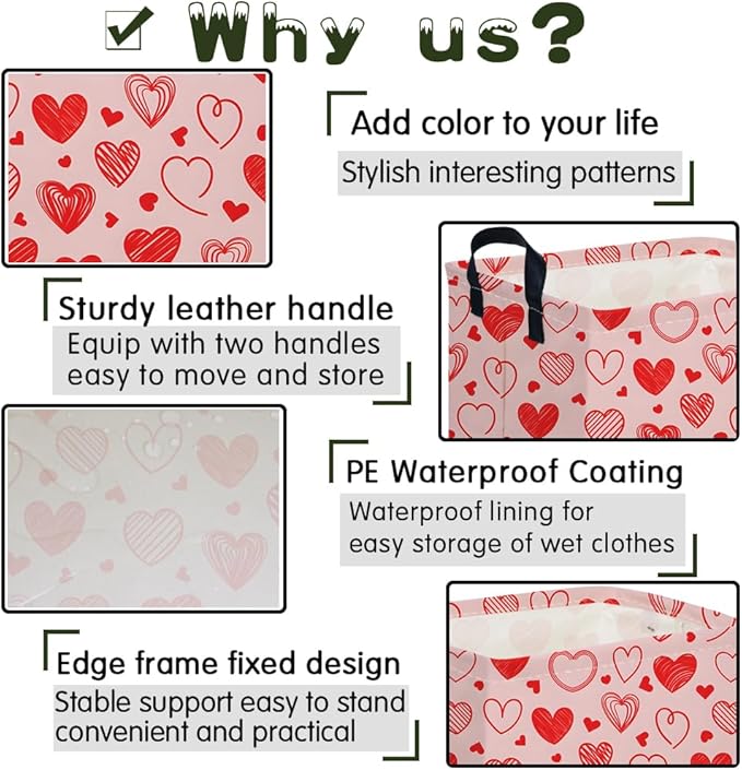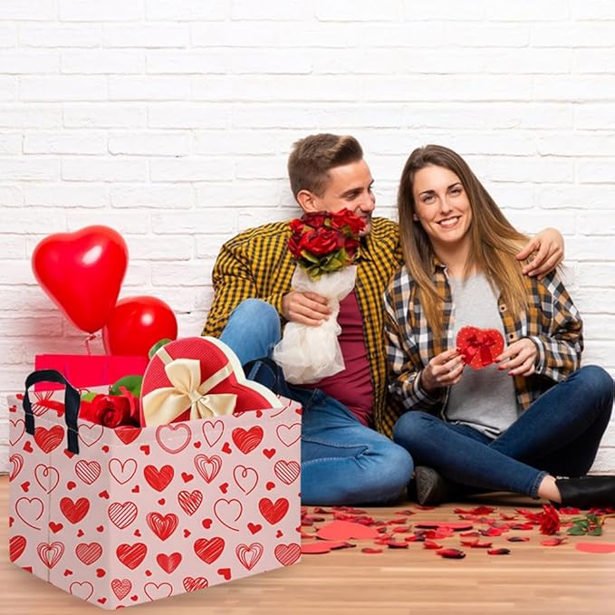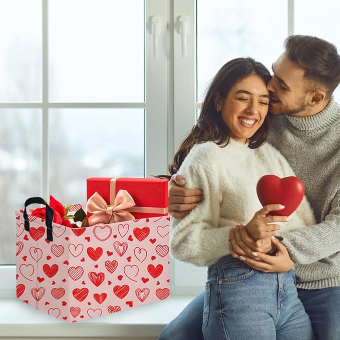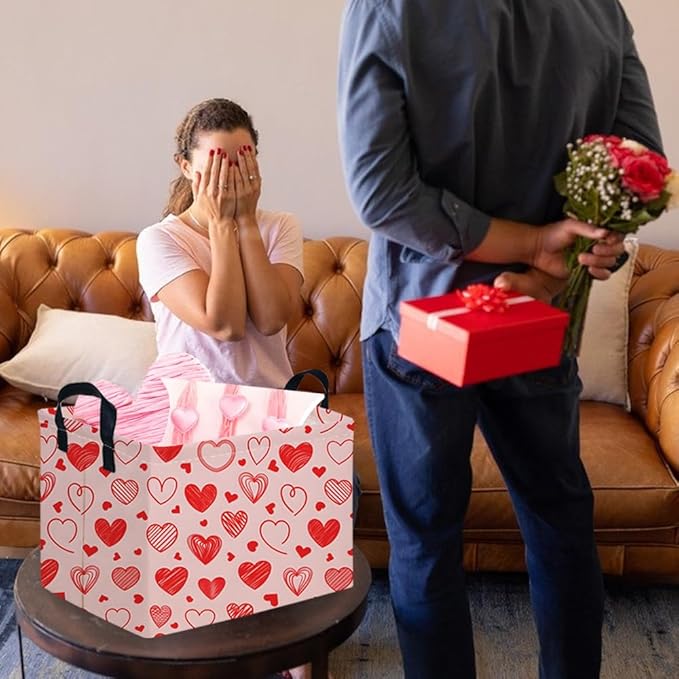Rectangular Pink Valentine's Day Gift Basket,nursery basket,Pink girls gift baskets,kids toy storage Bin, Love Heart Room Decor for Home,Shelf Baskets(Romantic Heart)