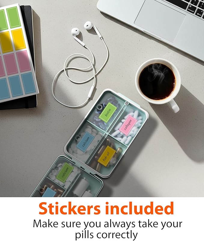 - Stay organized – this pill container includes writable labels to mark each section by day or med type, helping you keep a clear routine, avoid mix-ups, and feel confident every day