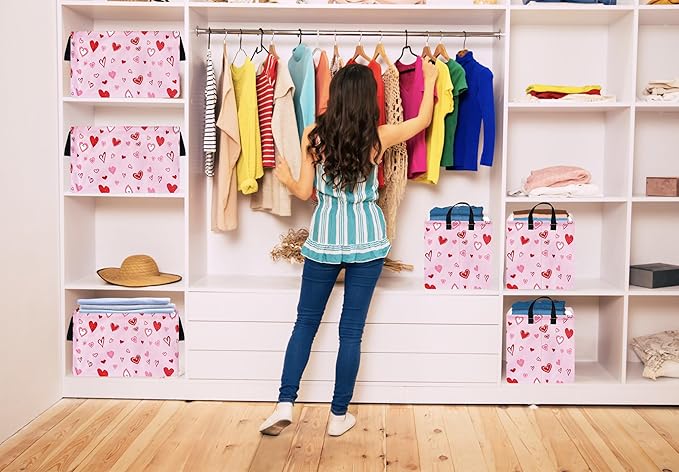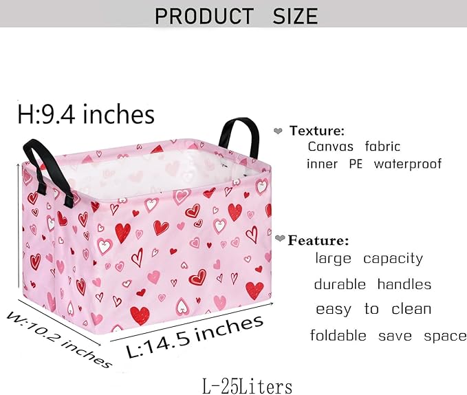 KUNRO Rectang Heart Pattern Vantine's Storage Basket Gift Shelf Basket Storage Bin, Nursery Basket Organizer Box for With Handles for Room Deco