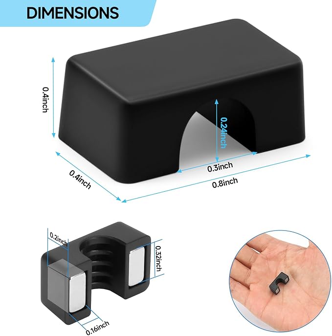 - Neat & Hidden Cable Organization:Each magnetic holder is small(0.79in×0.41in×0.31in). Small size makes storage and portability easy;Thin, low-profile design keeps wires out of sight (ideal for under desks) while eliminating clutter and tripping hazards. Maintain a clean, hazard-free space for work or daily use.