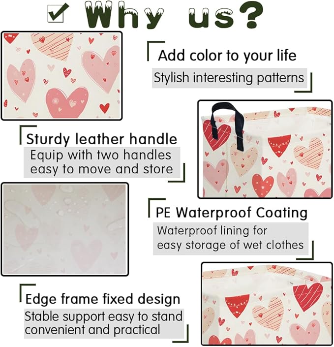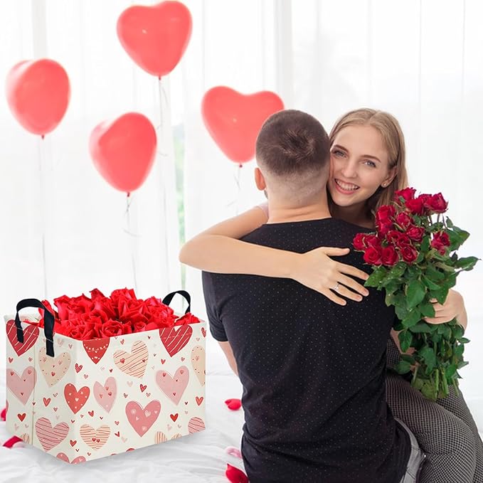 Rectangular Pink Valentine's Day Gift Basket,nursery basket,Pink girls gift baskets,kids toy storage Bin, Love Heart Room Decor for Home,Shelf Baskets(Shaped lines Heart)