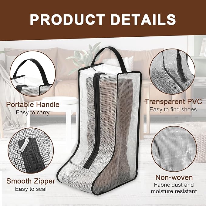 - Durable, Dustproof Material: Made of waterproof PVC and non-woven fabric to protect against dust, moisture, and dirt. Keeps boots fresh and protected in any season