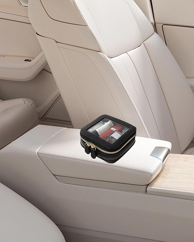 - Car Must Have Essential: Our car essentials small pouch travel toiletry bag is roomy to store your lipstick, eyebrow pencil, make-up foundation, cables, chargersor and other little items. It make your daily things organized and protected. This clear mini toiletry bag can be a good car accessory fits in the center console or other parts of your car