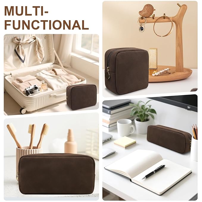- 【High Quality Material】The cosmetic bag is constructed of lightweight and durable suede fabric. It is soft and durable, helping to protect your beauty, cosmetics and toiletries from water spillage accidents.It will not lose color after the wash.