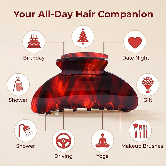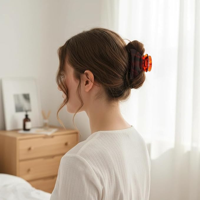 - NON SLIP:Soft material tortoise shell hair clips is the perfect size to hold up your hair in a bun or another funky, fun hairdo. Keep hair secure and in place with french hair jaw clips. These big claw hair clips for women won't slide or fall out of place. The new design of the no-slip grip jaw clip is great for everyday wear and perfect for special parties and laid back sundays, a simple, stylish look in no time.