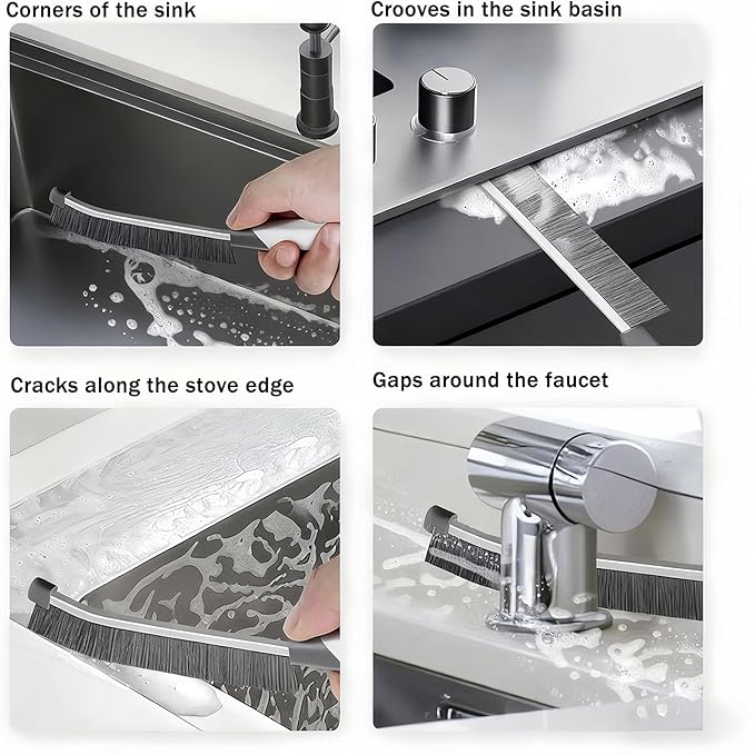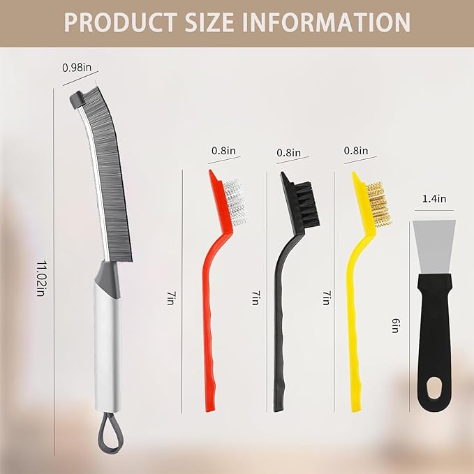 - Multifunctional Brushes: Suit for cleaning hard to reach and tight spots spaces, windowsills, tile countertop grout lines, sink, corners, fans, shower stand, stove, fridge gaskets, furniture, bathroom tub, closet, door tracks, bird feeders, car, laundry room, housekeeping, etc