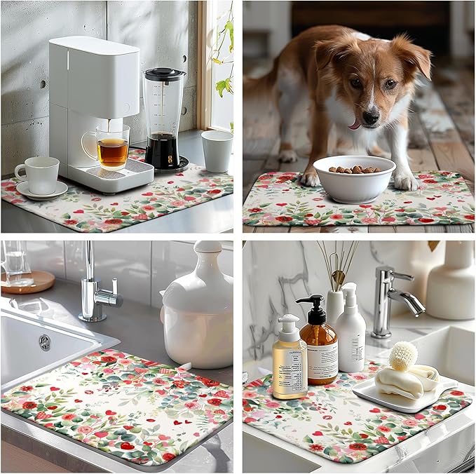 - [Super Absorbent]: Valentine's dish drying mat for kitchen counter surface is a super absorbent microfiber and the middle is a composite sponge that can absorb water equal to 4 times its weight. A valentine dish drainer mats can always keep your kitchen clean and tidy, giving you a more comfortable cooking space