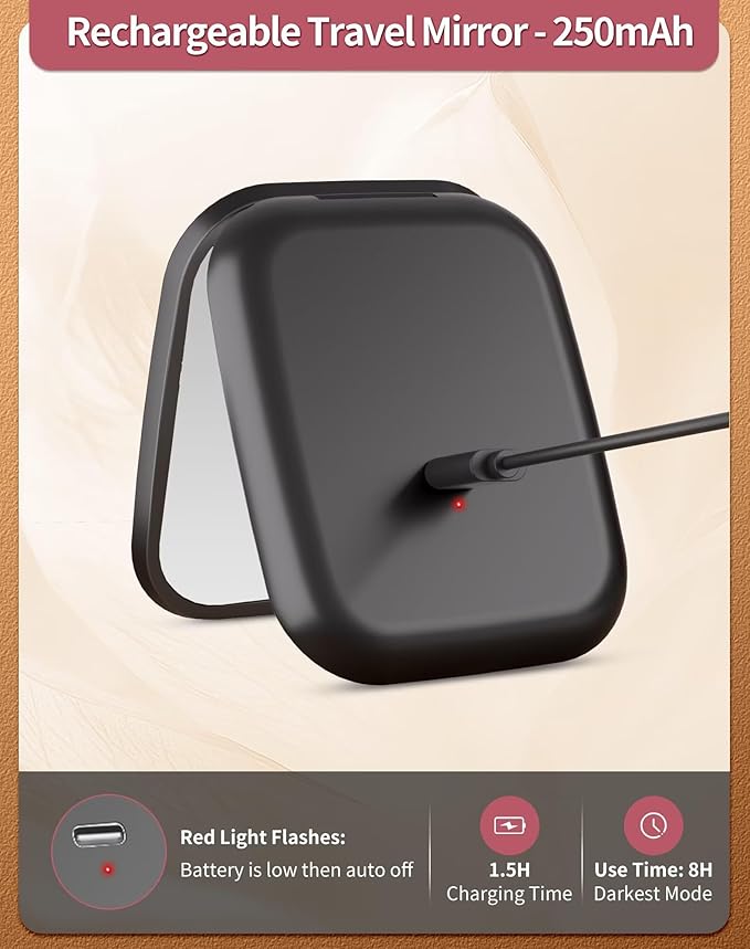 - Soft Adjustable Light:Features a dimmable LED that mimics natural daylight.Long press to customize the brightness for a clear, glare-free view and true-color makeup application
