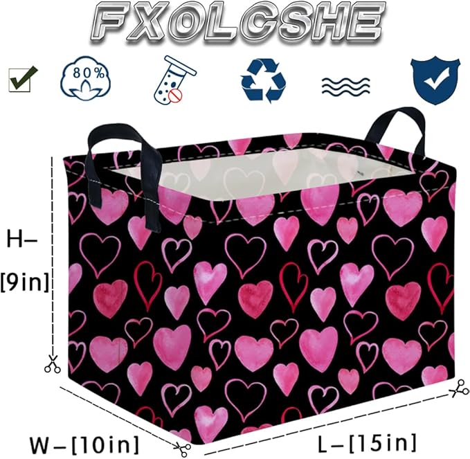 Rectangular Valentine's Day Gift Basket,nursery basket,Girls gift baskets,kids toy storage Bin, Love Heart Room Decor for Home,Shelf Baskets(Attract love)