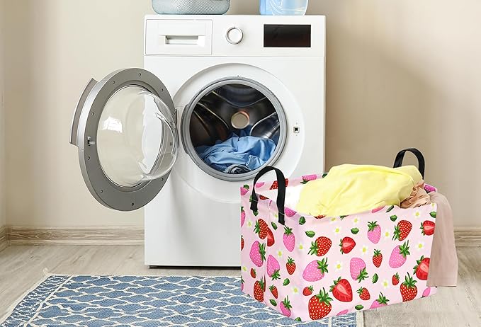 Rec Strawberry Print Storage Box Clothes Hamper Basket Collapsible Organizer Bin Gift Shelf Baskets for Home and Kitchen Storage.