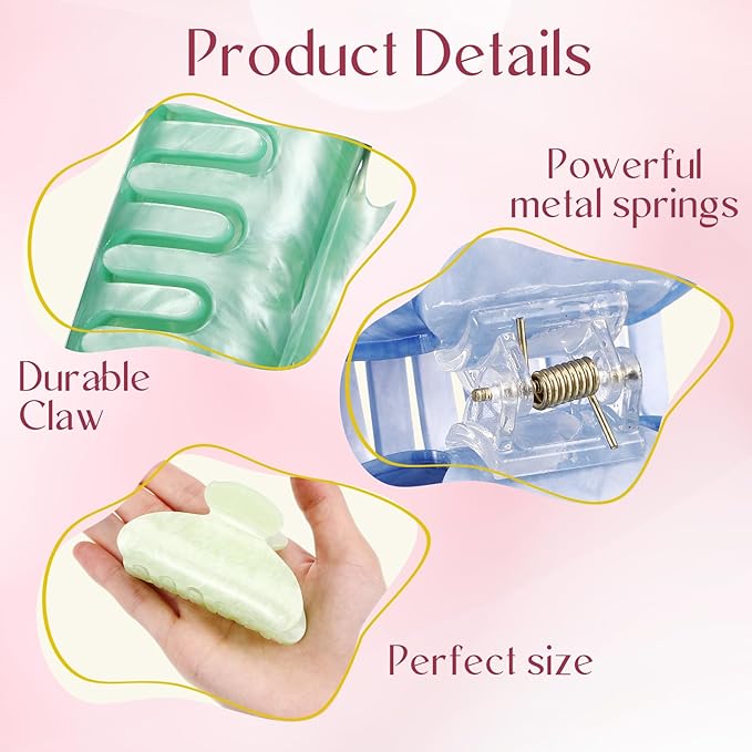 - Acrylic Hair Claw Clips: crafted from acrylic, our claw clips ensure a strong hold and non slip grip, catering for thick thin hair types; Thanks to the color protecting springs and clear acrylic material, it retains its color and integrity for years