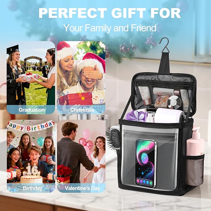 - Perfect Gift for Various Occasions: As an ideal and practical gift for travel, camping, dorm life, gym visits, or picnics, the toiletry organizer with hook is easy to fold up and slip it into the luggage without taking up much space at all, which helps keeping essentials orderly and accessible wherever you go