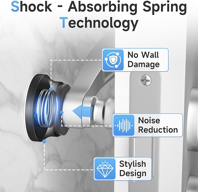 - Spring Shock Absorption Technology: Equipped with a built-in spring that effectively absorbs impact force and a top silicone head that provides cushioning, this wall door knob protector works synergistically to reduce the collision between the doorknob and the wall. It helps minimize noise, creating a quiet and undisturbed home environment
