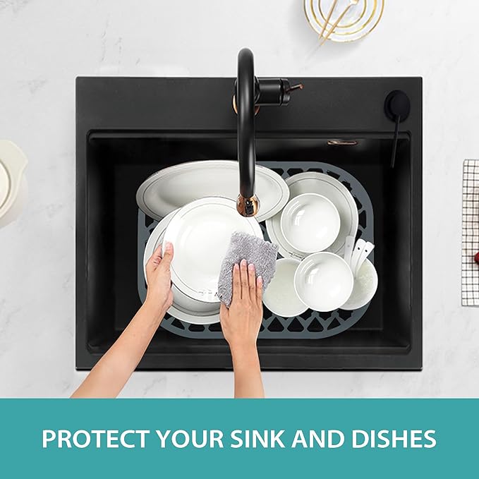 - Multipurpose & Easy to Match - The silicone sink mat not only can be sink protectors for kitchen sink, but also can be a drying mat or dish mat. It is an essential item for the daily cleaning of the kitchen.